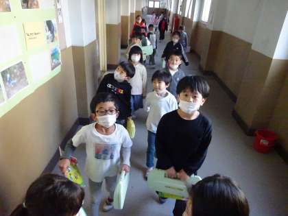 今日の音楽の時間は、音楽室へ行きました。廊下の歩き方が素敵でした。とても静かでしたね。