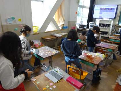 友だちの作った形を見て 自分の形とくらべたり、まねをしたりしました。
