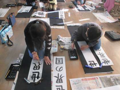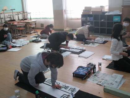 大きな紙に書くため,二つの教室に分かれて活動しました。