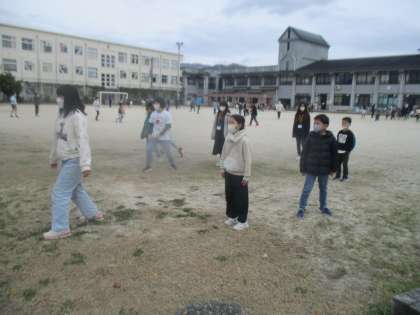 今日のロング昼休みは、エンジョイスマイルの時間で縦割り遊びを行いました。あるグループでは、1年生も楽しめるようにということで、だるまさんが転んだをしていました。4年生も久しぶりにするだるまさんが転んだを思いっきり楽しんでいました。