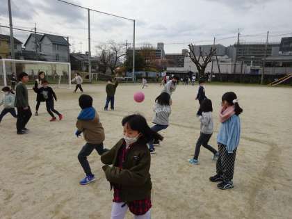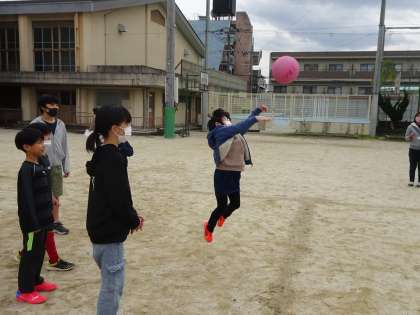 ほかの学年の友だちと なかよく ゆずり合いながら あそんでいます。