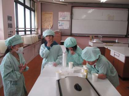 喫茶えのきで提供するポップコーンの試作品をつくりました。出来立てのポップコーンに電子ばかりで塩やカレー粉の分量をはかりながら加え、一番おいしい量を考えました。子どもたちは、試していく中でカレー味にも塩を入れた方がおいしくなると発見していました。