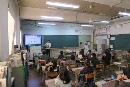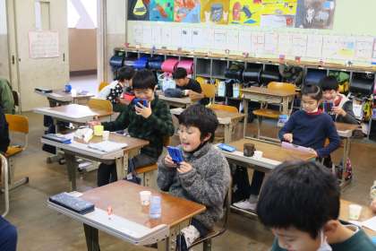 今日は養護教諭の先生による、歯磨き指導がありました。はじめに歯科検診の結果を見て、3年生は虫歯や汚れが多いことを知りました。ちゃんと毎日歯磨きをしているのになぜだろう?というところから、正しい歯磨きができていないのかもしれないという意見が出てきたので、正しい歯磨きの仕方について教えていただくことになりました。