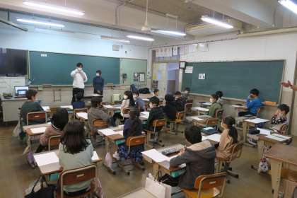 ドリームの時間には、飛鳥井ワークセンターの職員の方に来ていただき、お話を伺いました。3年生がまとめた新聞を読んだ感想を伝えていただいたあと、あらためて、障害とはどういうものなのか、教えていただきました。