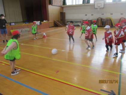 体育の時間では、ころがしドッジボールを学習しています。転がしたボールに当たらないように走ったり、跳んだり、また相手を当たられるように素早くころがしたりと楽しんでいます。一つの試合が終わると作戦タイムがあります。どうしたら,当たられるか,逃げられるかをチームで話し合います。チームで協力して楽しんで学習をしています。