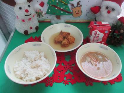 今日は、1年に1度のがんもどきのあんかけでした。手作りの味に大喜びの子ども達。おかわりがほしい!と大人気でした。豚汁もほっとする温かさでおいしかったですね。
