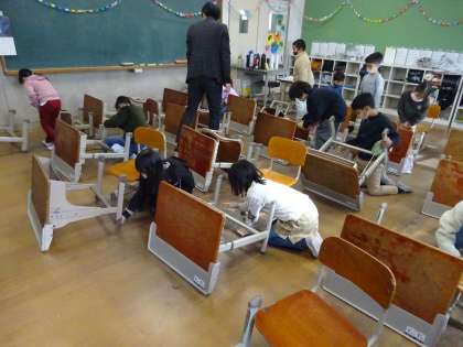 教室のそうじをすると、たくさんの ほこりが。2学き、がんばった分ですね。