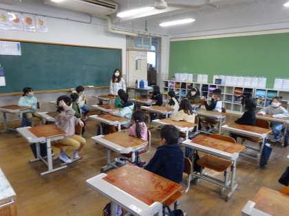 今日は、教室のそうじをしたり、冬休みにどんなことをしたのかを話したりしました。