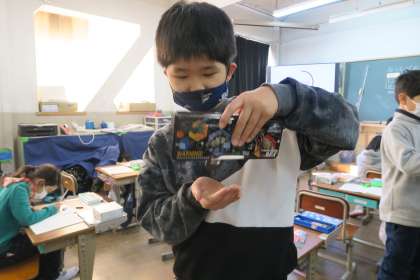 理科では、新しい学習「じしゃくのふしぎ」に入りました。今日は、磁石を教室のいろいろなものに近づけて、引きつけられるものと引きつけられないもの見つける活動をしました。子どもたちは、「予想通り引きつけられたよ。」「金属は引きつけられると思うよ。」などと話しながら、活動を楽しんでいました。