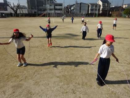 5時間目は、ぽかぽかと あたたかかったですね。なわとびをしていると「ぬいでいいですか。」と聞く人がたくさんいました。ちょうせつできるふくそうは大切です。
