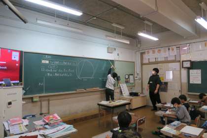 今日の算数の時間には、前時までに学習した二等辺三角形・正三角形を、コンパスと物差しを使ってどのようにかくことができるのか、考えました。道具をいろいろな向きにしながら、真剣に思考錯誤を重ねる子どもたち。とてもいい表情をしていました。