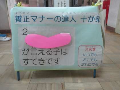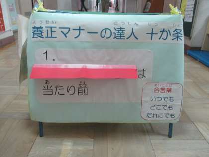 今養正小学校の廊下には、写真のようなものが置いてあります。子どもたちは「これ簡単!」と言ってくれています。しっかり覚えられているのですね。しっかり覚えて、しっかり実践をしてほしいです。