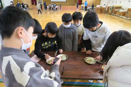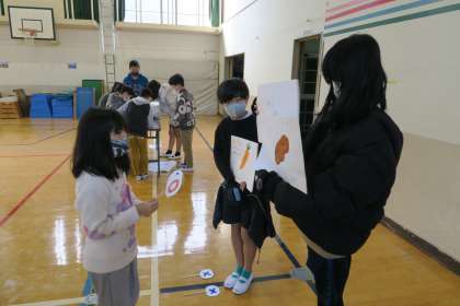 中間休みには、給食委員会と保健委員会主催の健康フェスティバルがありました。それぞれのブースでは、「箸で豆つかみ」や「片足でバランスをとるゲーム」など、健康に関するクイズやゲームを体験することができ、子どもたちはいきいきとした表情で楽しんでいました。