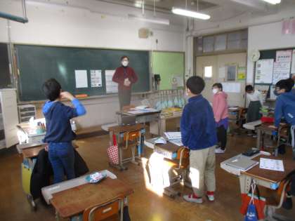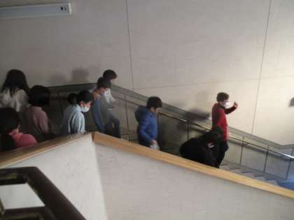 今日から新しいUnitの学習に入りました。学校の中の自分のお気に入りの部屋や場所を紹介したり,道案内をしたりする単元です。今日はALTの先生と一緒に英語を使って,学校内を探検しました。4年教室を出発してGo,straight→Turn,right→Go,straight→Turn,left and Go,down.さぁどこへたどり着いたでしょう?