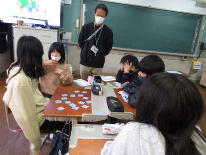 ゲームで英語の言葉慣れをした後は,教室を自由に歩きながら友達と交流をします。