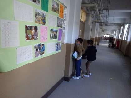 教室をとび出し、いろいろなものの長さをはかってみました。