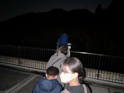 お昼頃は小雨が降っていたのですが、夜には星空が広がっていて、展望観測をすることができました。京都市ではなかなか見られない星空で、子どもたちも綺麗な星空にうっとりでした。望遠鏡で綺麗な星も見ることができました。