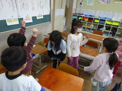 音楽の時間に、日本の遊び歌で 遊びました。