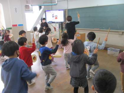 今月の人権学習は「となりの国について知ろう」です。コリアみんぞく教室の先生に韓国・朝鮮のことを教わりました。異文化に触れ,興味深々で聞いていました。いろいろな遊びや韓国の太鼓を演奏することで,笑顔でとなりの国について学ぶことが出来ました。