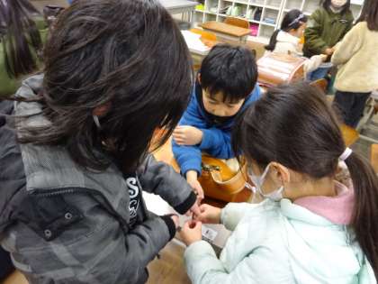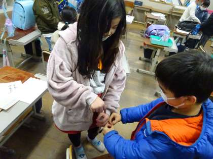 帰りのじゅんびをした後、少し時間があったので、日本の手あそび歌で あそびました。