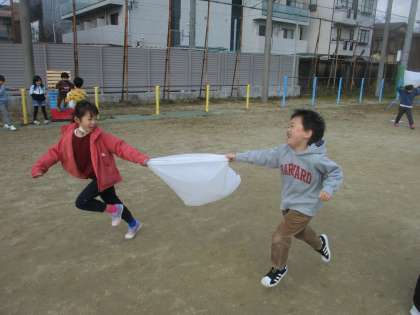 生活の時間では,寒い冬の風を使って学習を行いました。まずは,風車を作って,運動場で走ってみました。とてもよく回り,止まっていても回る風車もありました。次にビニール袋で風を捕まえてみてというと,みんな勢いよく走って風を捕まえてきました。