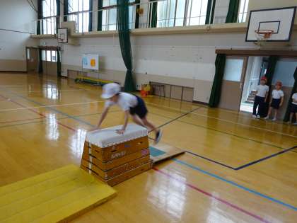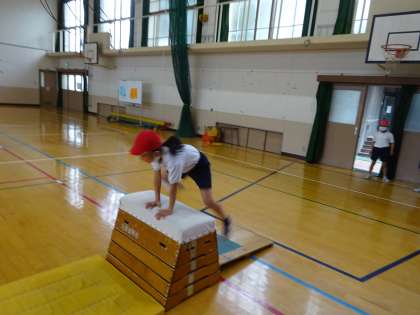 雨がふっていたので、よていをへんこうして 少しとびばこをしました。