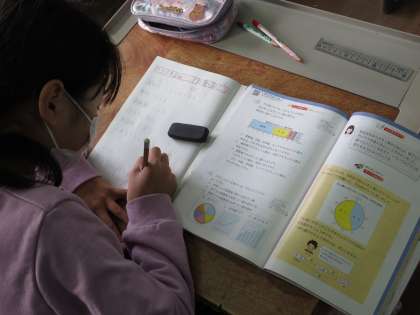 帯グラフから割合と人数を読み取ります。