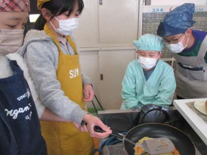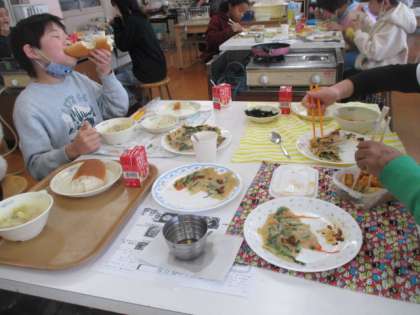 今月の人権学習「となりの国について知ろう」の学習で、チヂミづくりをしました。作りながらただようおいしそうなにおいに、出来上がる前から子どもたちも楽しみにしていました。モチモチの生地と先生特製ダレの相性は抜群!子どもたちも大満足のおいしさでした。