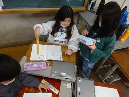 空きばこをつかって、「面」がどんな形をしているか、何がいくつあるのか、をしらべました。