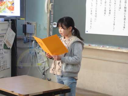 5年生はスピーチでおすすめの本の紹介をしました。