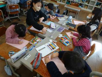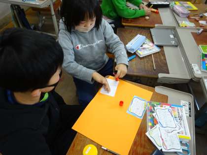 そつぎょうのおいわいにメッセージとフラッグを作りました。