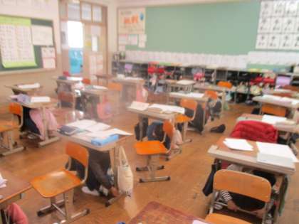 今日は、12年前の3月11日に起こった東日本大震災を風化させないためにシェイクアウト訓練を行いました。授業中の突然の警報音に驚きながらもこれまでの訓練で身につけた一時避難行動をしっかりとり命を守る行動をすることができました。