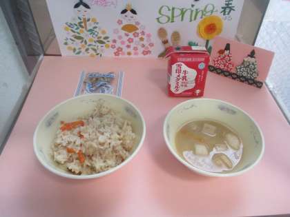 今年度最後の備蓄物資を使った献立でした。だしのきいた炊きこみ五目ごはんと、具だくさんのみそ汁がとてもおいしかったですね。子どもたちも、しっかり、たくさん食べていました!明日は12年前、東日本大震災があった3月11日です。その時をふり返り、家に非常物資があるか、非常バッグがあるか、今一度確認する機会となればよいですね。