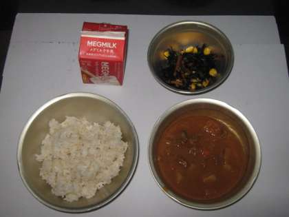 今日の給食は,玄米ごはん・牛乳・カレー・ひじきのソティでした。カレーのルーを作るのに,バターが調達出来なかったため,かわりにサラダ油を使いました。なめらかなルーを作るのに,バターに比べサラダ油は時間や手間がかかります。ゆっくり時間をかけて作りました。おいしいカレーに仕上がり,どの学年もご飯が足りないくらい好評でした。