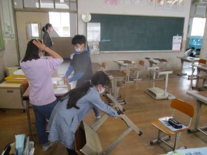 最終日の今日、これまで1年間お世話になった教室や廊下をみんなできれいにしました。お礼の気持ちを込めて普段は手の届かない隅々まで丁寧に掃除しました。