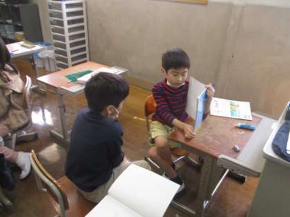 今日から算数の学習が始まりました。授業では、お互いの考えをノートを見せながら説明していました。それぞれが伝え合うことでいろいろな考え方が出てきて、より分かりやすいものや自分に合ったものを見つけることができてとてもいい学習になりました。