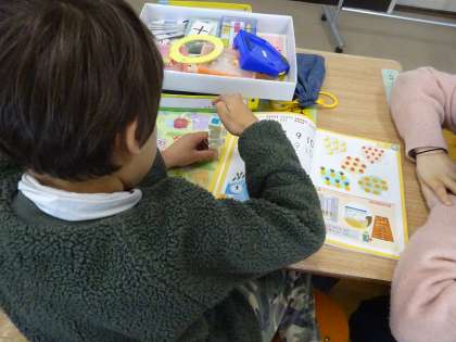 きょうは、きょうかしょも つかいながら、かずをかぞえたり くらべたりしました。