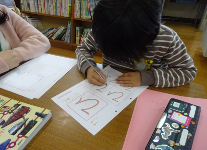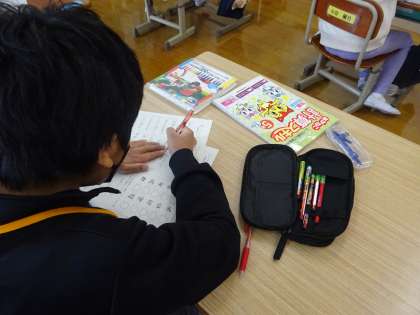 1ねんせいはひらがな、4年生・5年生・6年生は漢字の練習をしました。