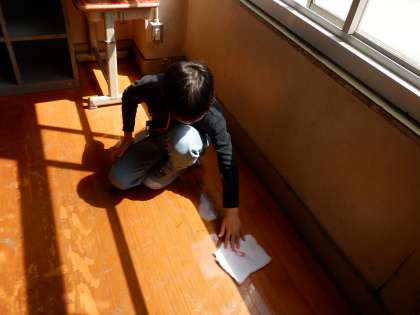 昼休みを終えて、すぐに掃除にとりかかる6年生の姿がありました。ぞうきんで床や廊下をきれいにしていました。さすがです!
