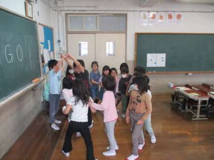 「ロンドン橋」では、歌詞の「さあ、どうしましょう」に合わせて橋を落とし、橋役の人を次々変えながらみんなで楽しく遊びながら歌いました。