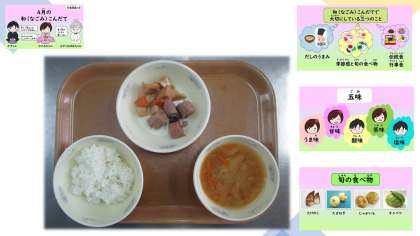 今日は月に1回和食を味わう和(なごみ)献立の日です。和(なごみ)献立では、だしのうまみや季節感や旬を味わことのできる献立、伝統行事にちなんだ献立等、和食の特徴やよさをより味わえるように工夫しています。
