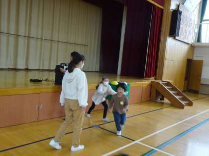 手拍子の数に合わせて集まったり、動物になり切って歩いたり、ボールを使ったり…いろいろなやり方で体を動かして楽しみました!