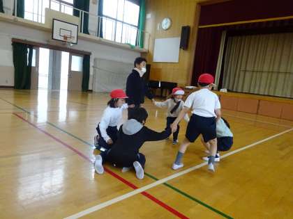 3年生と一緒に、体ほぐしの運動に参加しました。