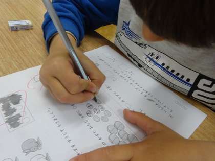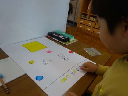 おはじきを つかって、かずの がくしゅうを しました。
