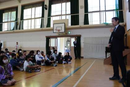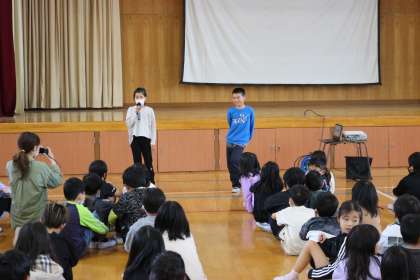 今年度初めてのにこにこ集会がありました。児童会代表に当選された先輩の堂々とした姿を見た後には、学級代表の紹介がありました。前に立って話すことのできる代表の二人、とても素敵でした。そしてその頑張りを支えていたのはやはり聞き手の存在です。一生懸命話を聞いて、拍手までしっかりしていること、素晴らしかったです。お互いを大切にしているのが伝わってきました。
