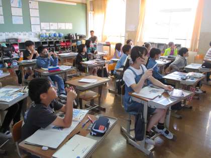 今日の学習では、雲画像や雨量情報から天気を予想してみました。天気は西から東へ動くことをもとに、しっかり予想することができました。また、「富士山にかさ雲がかかると雨」「飛行機雲がなかなか消えないと雨」などの観天望気に興味を示していました。お休みの日に見つけられるといいですね。