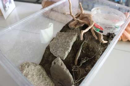4年生の子どもが虫かごを持って帰ろうとしていました。学校で飼っているトカゲですが、休みが続くのでお家で世話をするそうです。中をじっくり見させてもらったら、日なた、日陰ができるようにされていること、運動できるような木が入れられていること、土の乾燥具合がとても良いことなど、多くのことに気づかされました。ここまで丁寧に住みかを作ってもらっていたらトカゲもきっと喜んでいると思います。大変でも一生懸命世話をして大切にできること、素敵です。