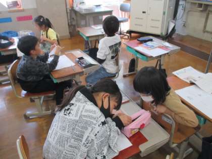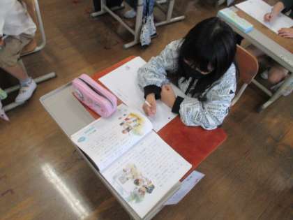 はじめこそ「先生にばれてしまったから後悔していると思う。」という意見の人が多かったのですが、主人公の後悔している表情や気もちを深ぼりすることで、きまりの大切さに気付いている子たちもたくさん見られました。今日の学習内容が記されたプリントは家庭に持ち帰っています。ご家庭でも子どもたちの学びを見ていただき、コメントをいただけると幸いです。