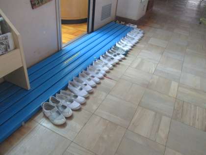 今日は、4時間目に図書室へ行きました。本を読むことが大好きな子どもたちは今日もうきうきした気分で図書室へ向かいました。図書室についてふと目を向けると…上靴が今日もきれいに並んでいました。「はきものがそろうと心もそろう」素敵な5年生の子どもたちですね。