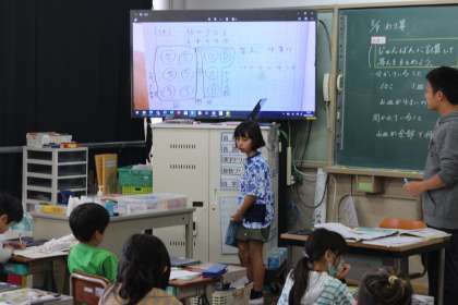 授業中、子どもたちから自然に生まれてくる図に驚かされました。こうやって図にかいてみて、頭の中を整理していくこと、大切ですね。その図をつかって説明をすると、聞いている側も分かりやすい様子でした。どちらも成長できる素敵なアイテムです。